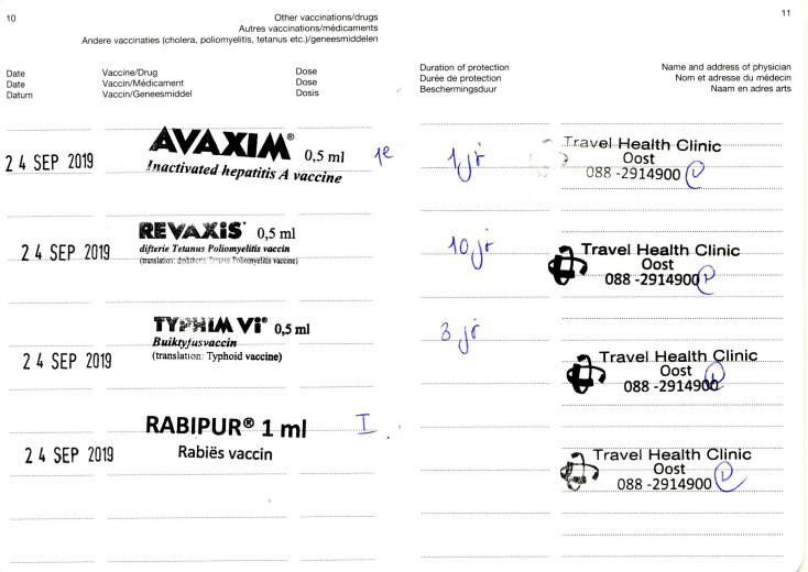 We houden er alledrie een prachtig vaccinatie ‘paspoort’ aan over. Het mag wat kosten, maar dan heb je ook wat!