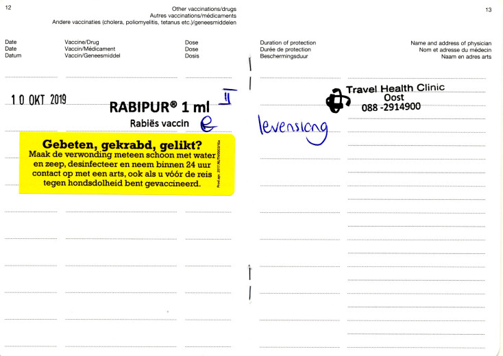 De eerste drie lijken echt wel nodig, de vaccinatie tegen hondsdolheid hebben we voor de zekerheid ook maar genomen. Het geheel kwam per persoon op ruim 300 Euro, slik. Arina en Jos hadden de mazzel dat daarvan een redelijk deel door de (aanvullende) ziektekostenverzekering werd vergoed. Als arme student met slechts een basisverzekering betaalde Roos de hoofdprijs. Tja, verschil moet er wezen.