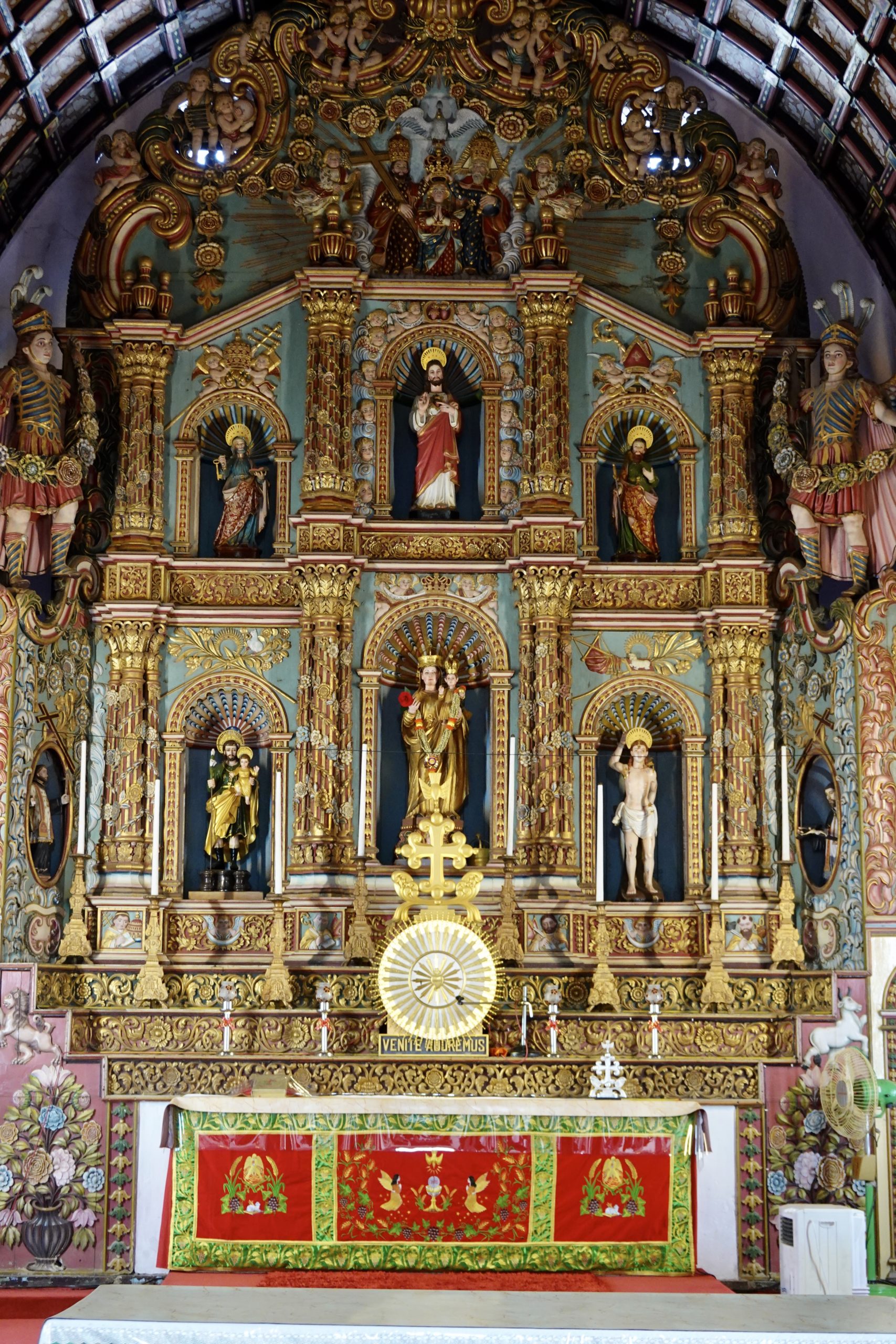 Na verloop van tijd leggen we aan bij een dorpje en daar staat een mooie kerk die we van binnen kunnen bekijken. Vooral de schilderingen op het plafond zijn mooi. Jammer dat Jos daar geen foto van maakt.