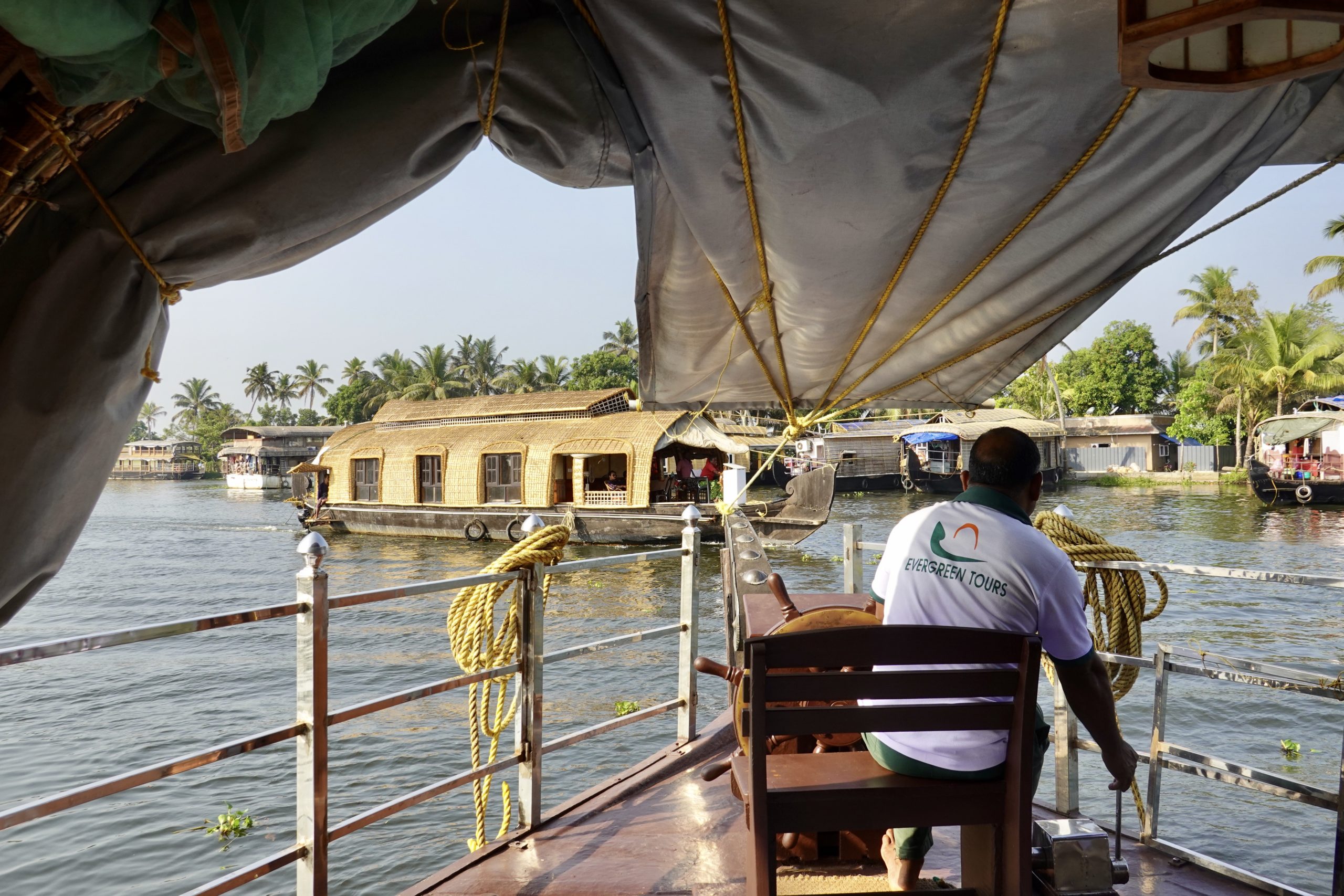 Chauffeur Aneesh staat weer netjes klaar. Na de bagage ingeladen te hebben gaan we op weg naar onze laatste bestemming: het Purity Resort in Muhamma aan Lake Vembanad.
