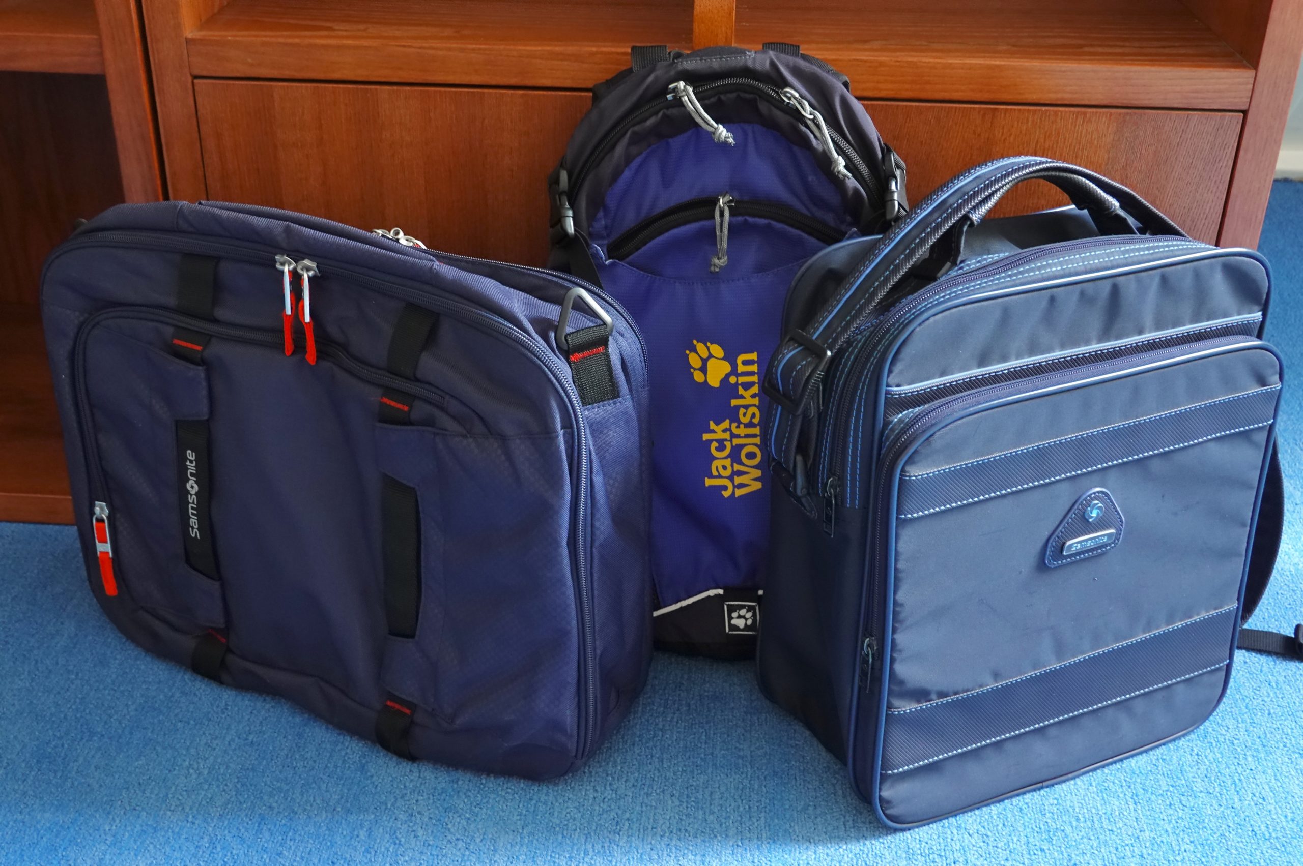 De tassenkeuze was een enorm succes. De nieuwe Samsonite (links op de linkse foto) was een uitstekend keus als handbagage. Ik heb deze vooral gebruikt om alles paraat te hebben op het gebied van plannen, toegang en formaliteiten. Maar uiteraard zat er wat meer in, met name de waardevollere zaken.